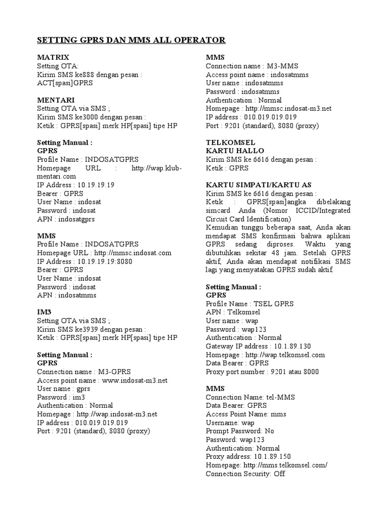 Cara setting gprs telkomsel secara manual. Setting gprs kartu simpati lewat sms : Mendaftar sebagai pelanggan gprs, yang hanya dapat dilakukan melalui sms. Telkomsel sendiri merupakan salah satu provider kartu seluler yang mengharuskan penggunanya mengaktifkan gprs terlebih dahulu sebelum bisa menggunakan layanan internet. Simpati ketik pesan sms :